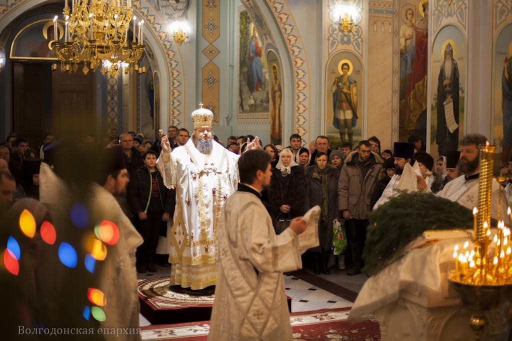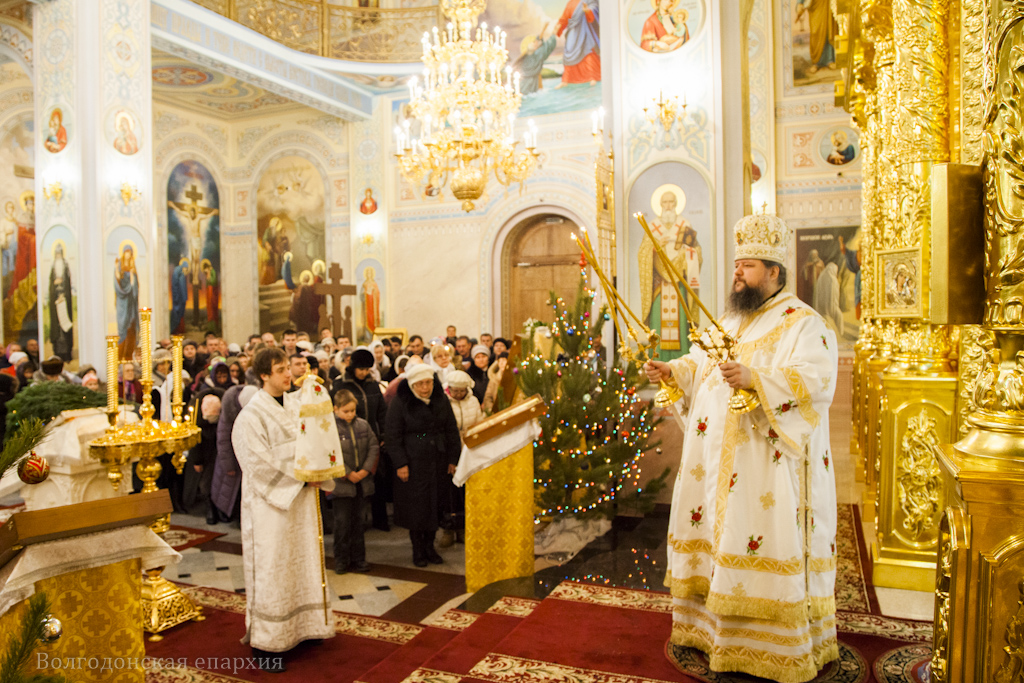 В ночь с 6 на 7 января 2015 года, в праздник Рождества Господа Бога и Спаса нашего Иисуса Христа в кафедральном соборе Рождества Христова г. Волгодонска началось праздничное Рождественское богослужение — первая Божественная литургия, которую возглавил епископ Волгодонский и Сальский Корнилий. Его Преосвященству сослужили: секретарь Волгодонской епархии иерей Роман Нихаев, ключарь собора Рождества Христова-благочинный Центрального Волгодонского округа протоиерей Антоний Савенков, протоиерей Дмитрий Денисенко, иеромонах Никон (Синюшкин), иерей Сергий Петров, иерей Алексей Скоробогатов, иерей Георгий Соловьев, протодиакон Константин Захаров, диакон Алексей Смолев.