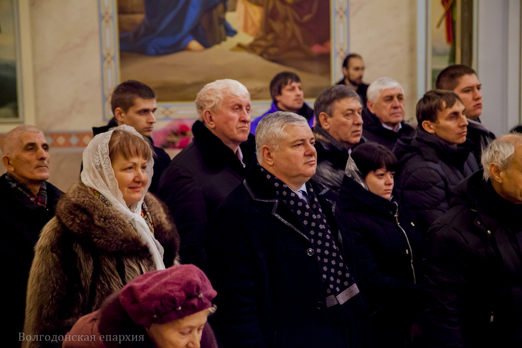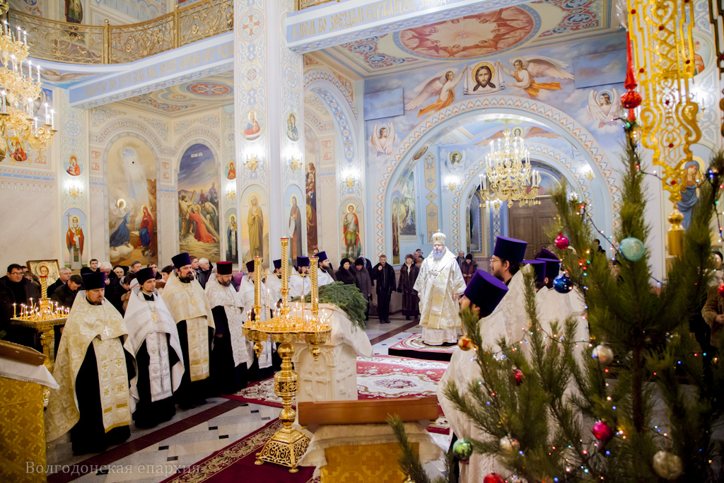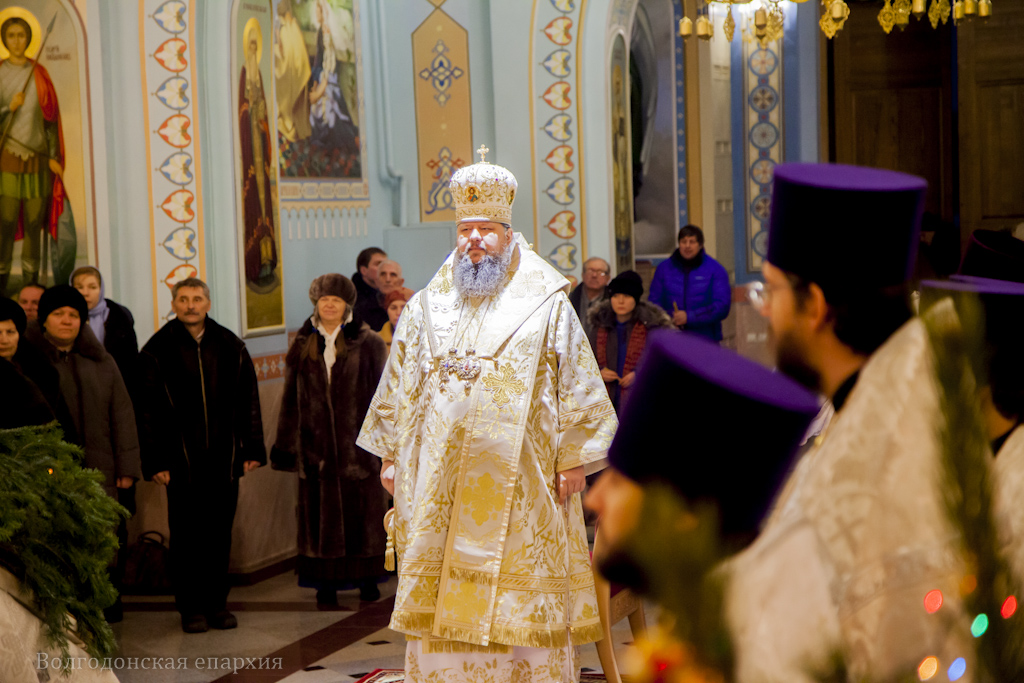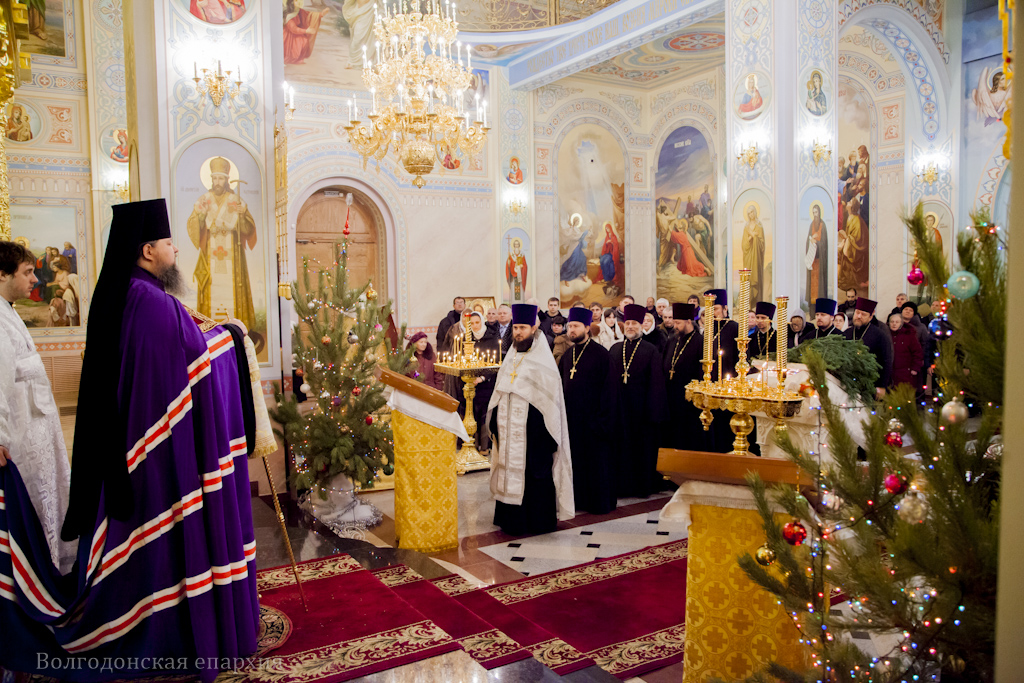 Вечером 7 января 2015 года епископ Волгодонский и Сальский Корнилий в сослужении духовенства Волгодонской епархии совершил Великую вечерню в кафедральном соборе Рождества Христова г. Волгодонске. За богослужением молились: Мэр Волгодонска Виктор Фирсов, председатель Городской Думы Петр Горчанюк. По окончании богослужения было оглашено Рождественское послание епископа Волгодонского и Сальского Корнилия. От имени духовенства Волгодонской епархии с праздником Рождества Христова Преосвященнейшего владыку приветствовал секретарь епархии иерей Роман Нихаев. Затем Глава Волгодонской епархии обратился к молящимся с Архипастырским словом. В заключение Преосвященнейший Корнилий по традиции принял поздравления с праздником Рождества Христова от священнослужителей и мирян.Всего просмотров (171)