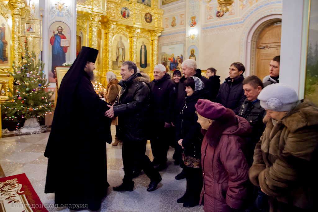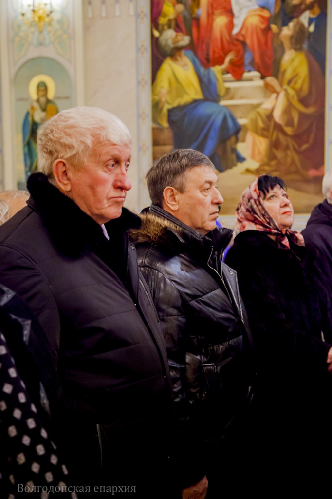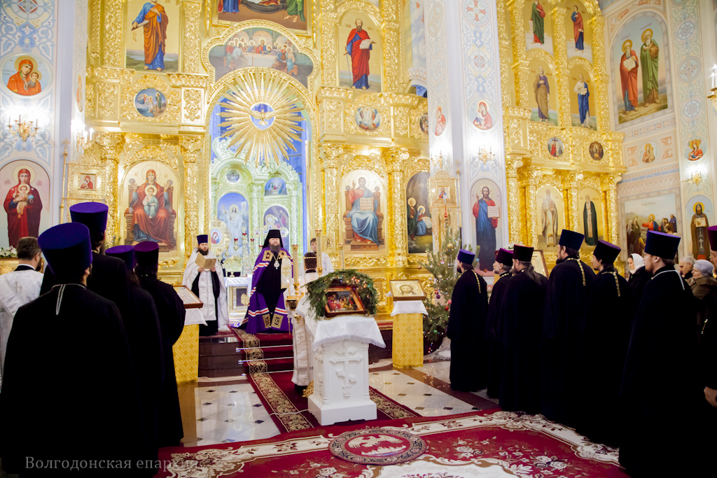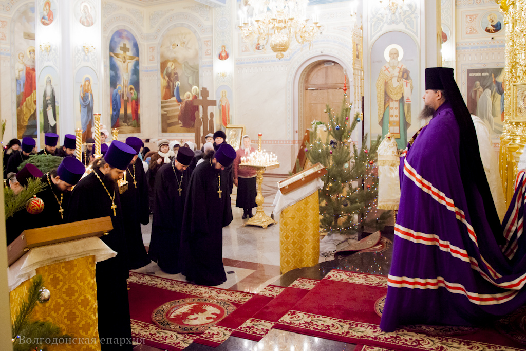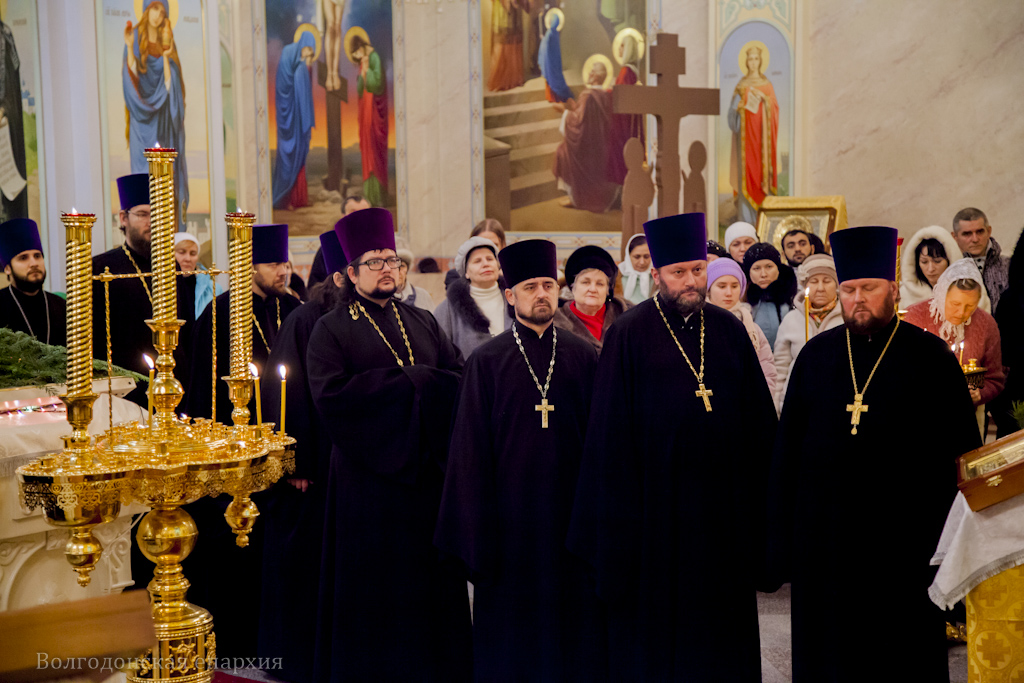 Вечером 7 января 2015 года епископ Волгодонский и Сальский Корнилий в сослужении духовенства Волгодонской епархии совершил Великую вечерню в кафедральном соборе Рождества Христова г. Волгодонске. За богослужением молились: Мэр Волгодонска Виктор Фирсов, председатель Городской Думы Петр Горчанюк. По окончании богослужения было оглашено Рождественское послание епископа Волгодонского и Сальского Корнилия. От имени духовенства Волгодонской епархии с праздником Рождества Христова Преосвященнейшего владыку приветствовал секретарь епархии иерей Роман Нихаев. Затем Глава Волгодонской епархии обратился к молящимся с Архипастырским словом. В заключение Преосвященнейший Корнилий по традиции принял поздравления с праздником Рождества Христова от священнослужителей и мирян.Всего просмотров (171)
