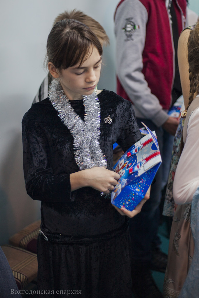 Затем воспитанники приходской воскресной школы организовали краткое выступление где прозвучали Рождественские стихи и песнопения, после чего по традиции Преосвященнейший Корнилий вручил ученикам сладкие Рождественские подарки.