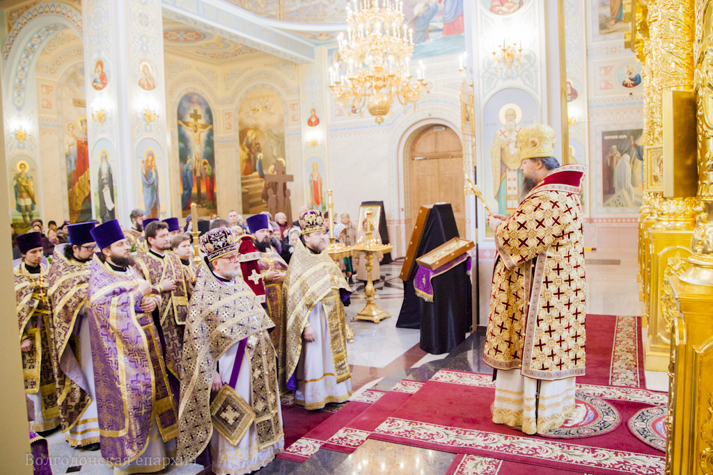 1 марта 2015 года, в Неделю Торжества Православия, Глава Волгодонской епархии епископ Волгодонский и Сальский Корнилий совершил Божественную литургию св. Василия Великого в кафедральном соборе Рождества Христова г. Волгодонска. Его Преосвященству сослужили: секретарь Волгодонской епархии иерей Роман Нихаев, ключарь кафедрального собора Рождества Христова — благочинный Центрального Волгодонского округа протоиерей Антоний Савенков, протоиерей Дмитрий Денисенко, митрофорный протоиерей Николай Овчинников, митрофорный протоиерей Богдан Щур, иеромонах Никон (Синюшкин), иерей Николай Соловьев, иерей Сергий Петров, иерей Алексей Скоробогатов, иерей Георгий Андреев, протодиакон Константин Захаров, диакон Алексей Смолев.