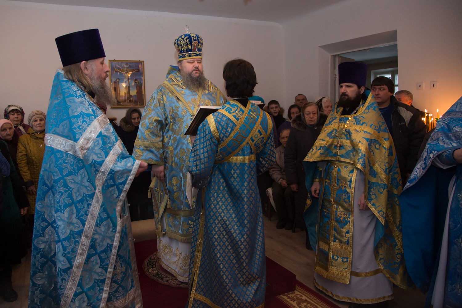 Его Преосвященству сослужили: секретарь Волгодонской епархии иерей Роман Нихаев, протоиерей Антоний Савенков, протоиерей Георгий Трофимов, иерей Михаил Дегтерев, протодиакон Константин Захаров.