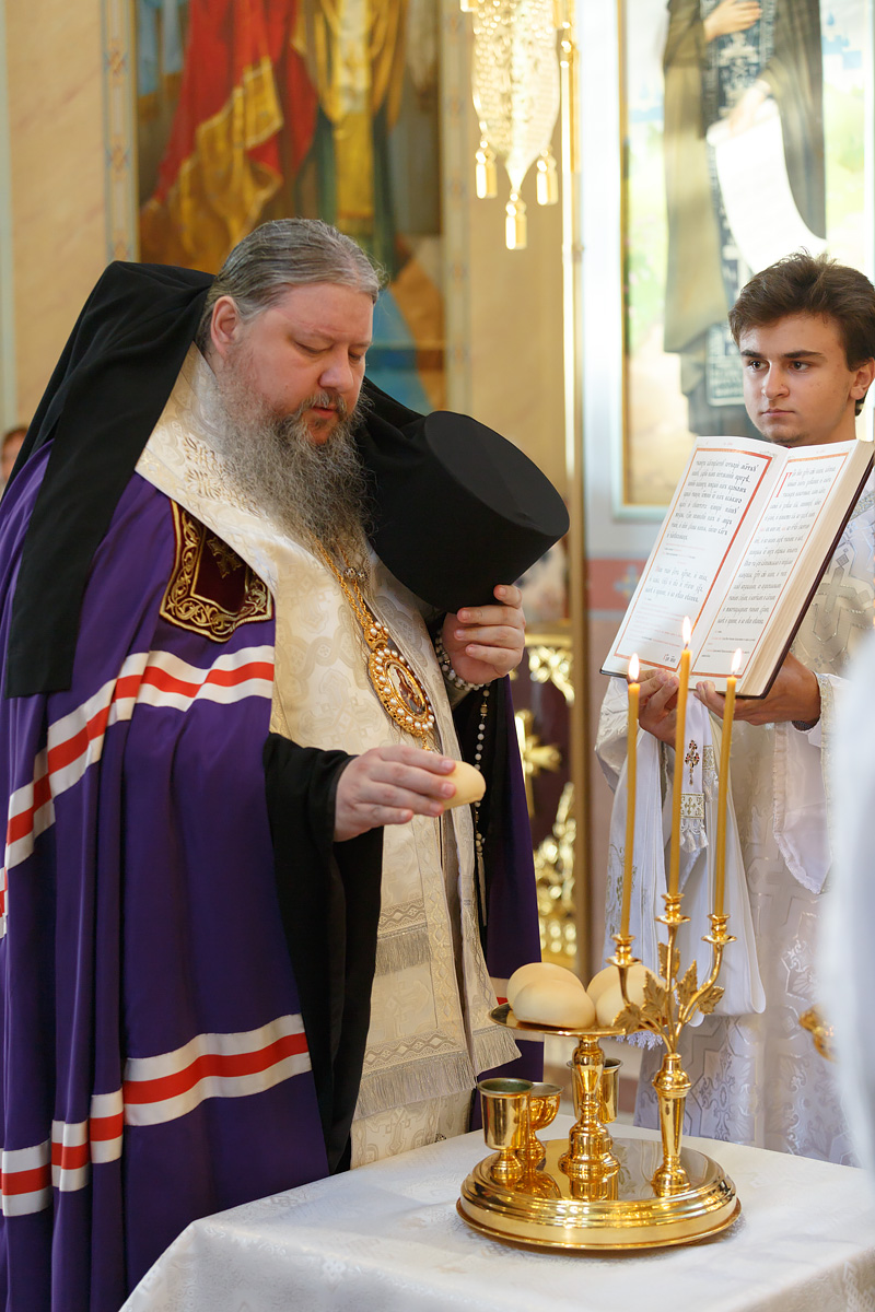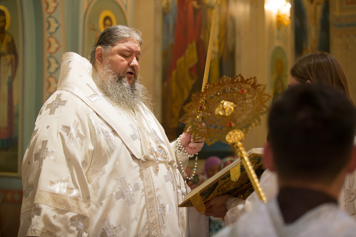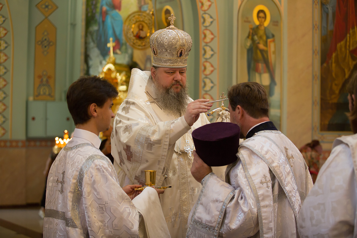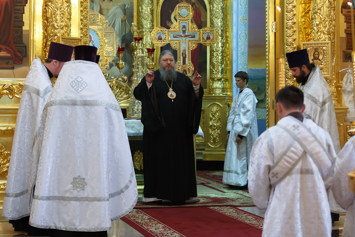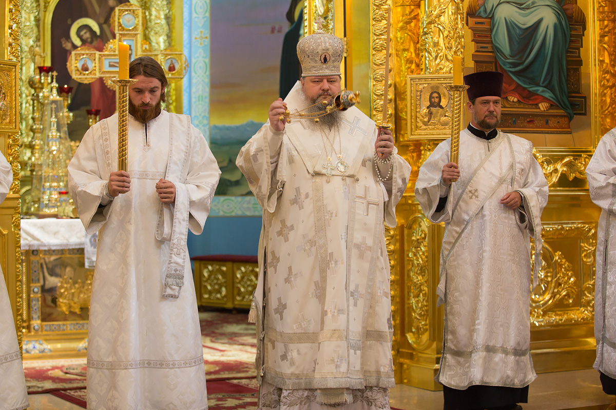 Его Преосвященству сослужили: протоиерей Антоний Савенков, иерей Сергий Дмитров, иерей Николай Соловьев, иерей Сергий Петров, иерей Александр Болденков, иерей Олег Тимченко, протодиакон Константин Захаров.