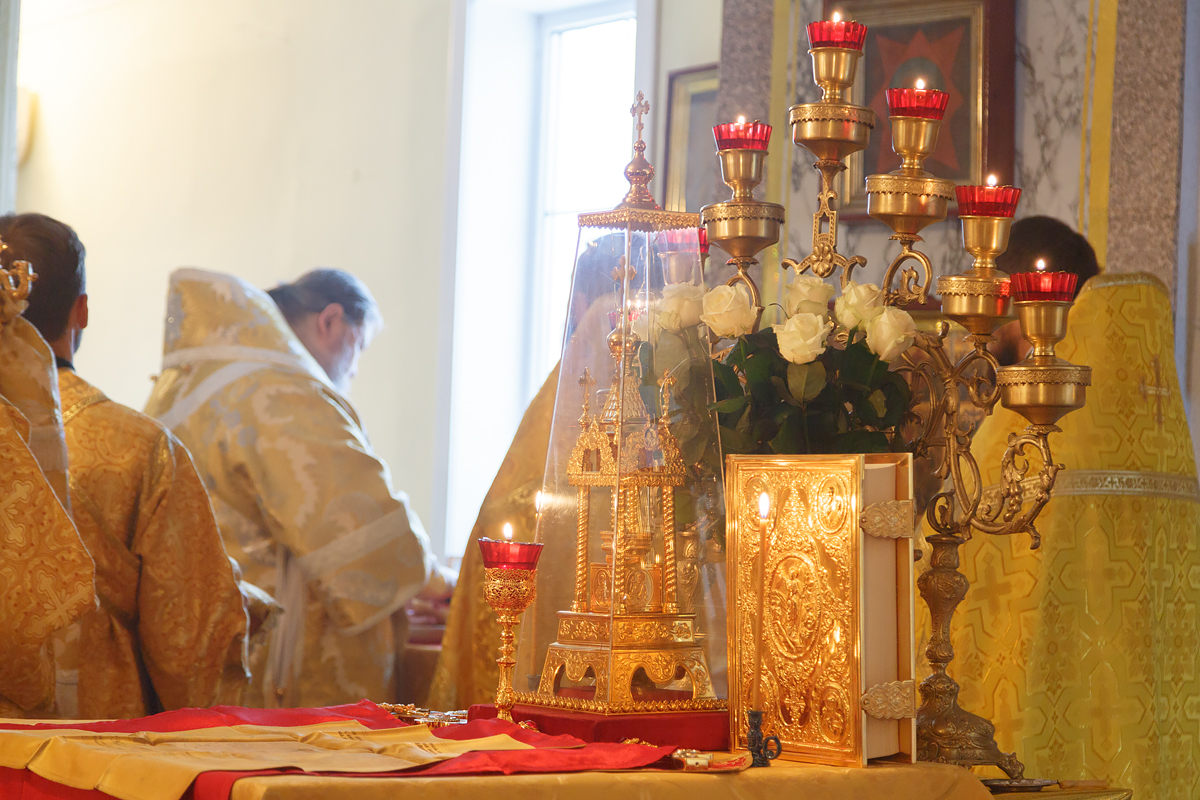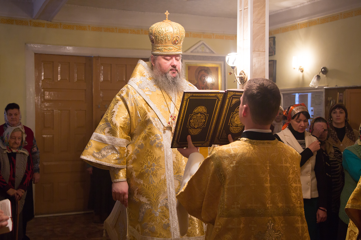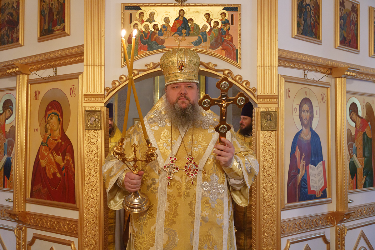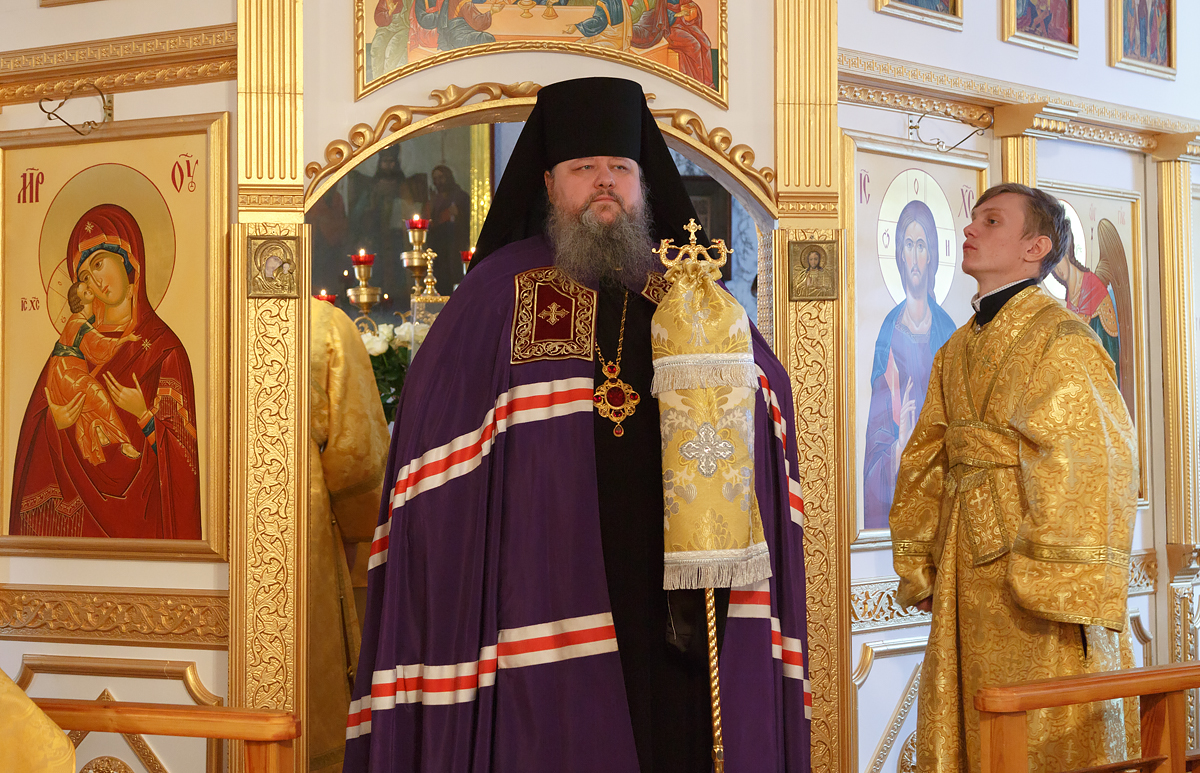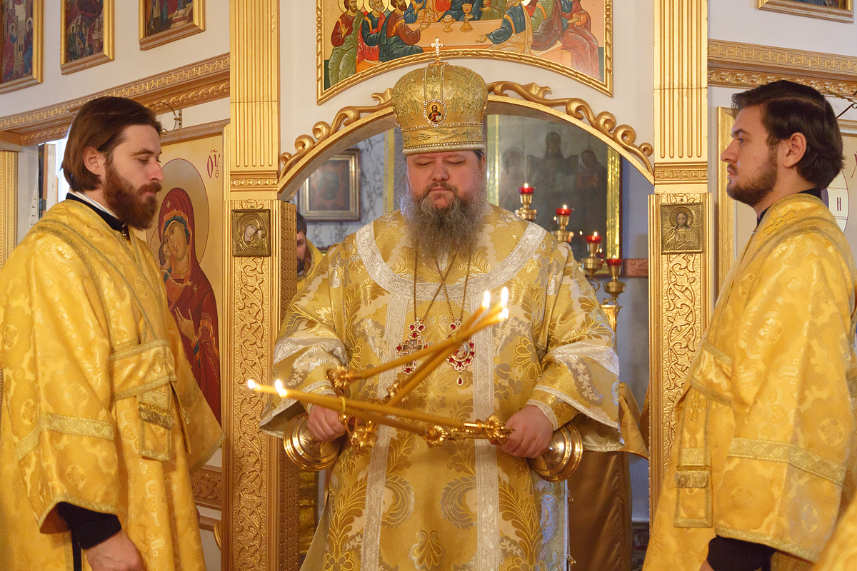 Его Преосвященству сослужили: протоиерей Антоний Савенков; иерей Роман Нихаев; иерей Алексий Каменцев; иерей Николай Соловьев; иерей Михаил Лотошников; иерей Сергий Дмитров; протодиакон Константин Захаров.