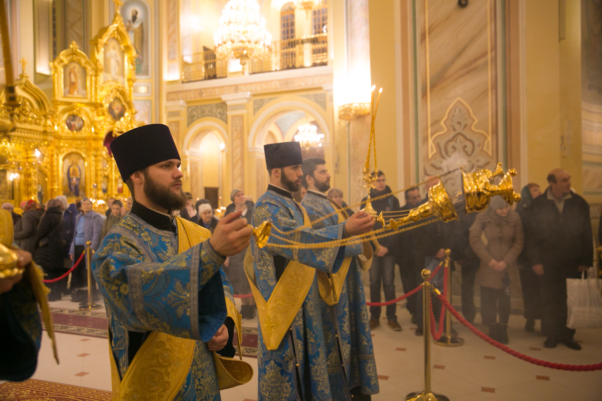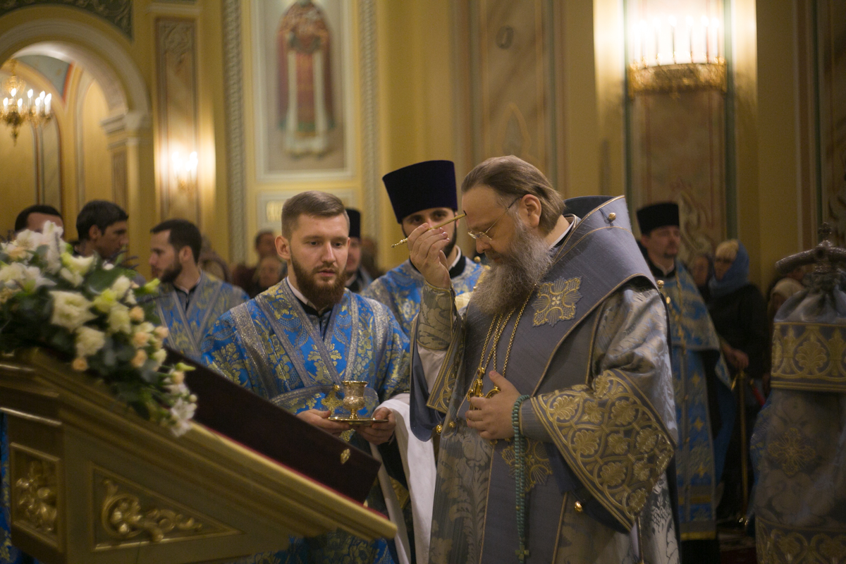 Его Высокопреосвященству сослужили настоятель собора иеромонах Артемий (Кузьмин), духовник Ростовской-на-Дону епархии протоиерей Николай Урывский и клирики собора.