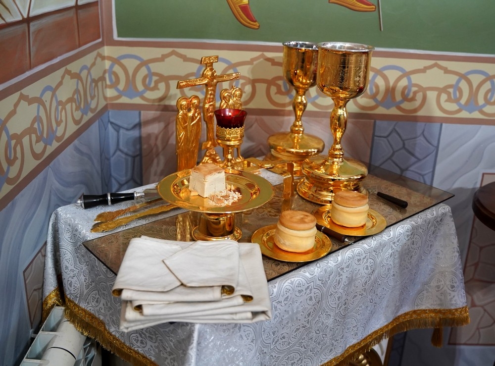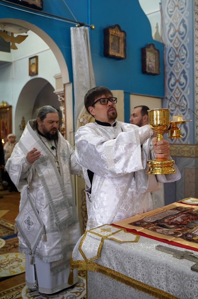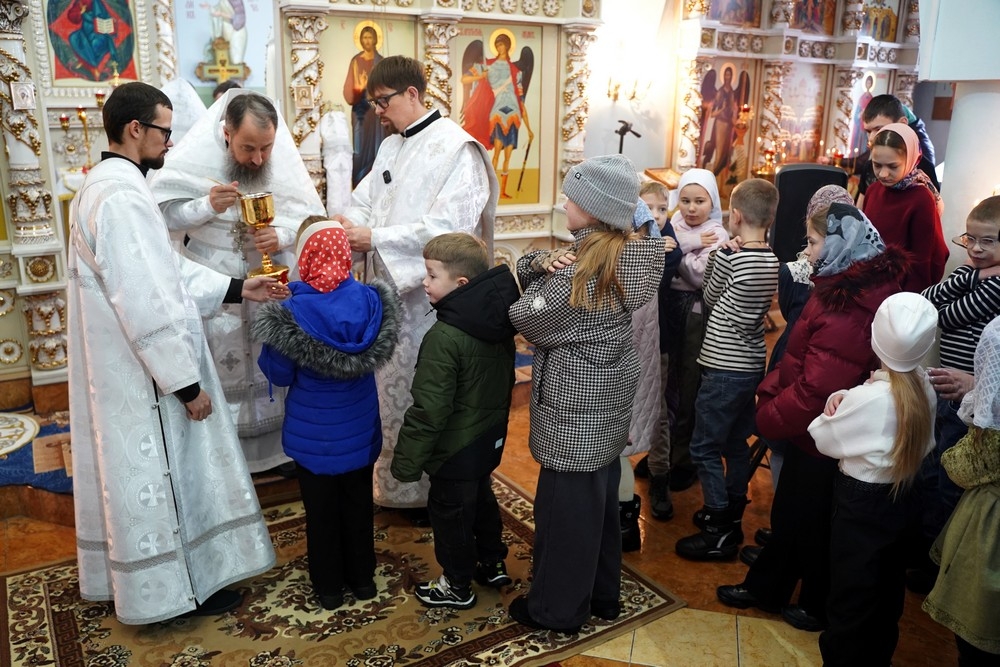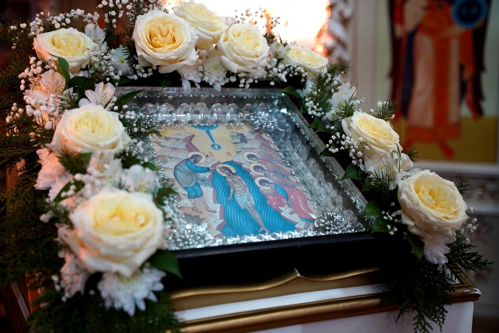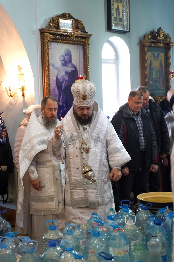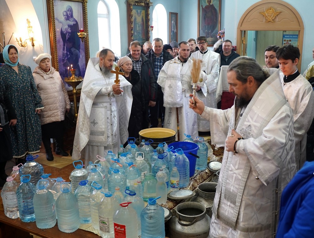 На сугубой ектении были вознесены молитвы о Святой Руси. После Литургии совершены Часы и Вечерня с чтением паремий и чином Великого освящения воды.